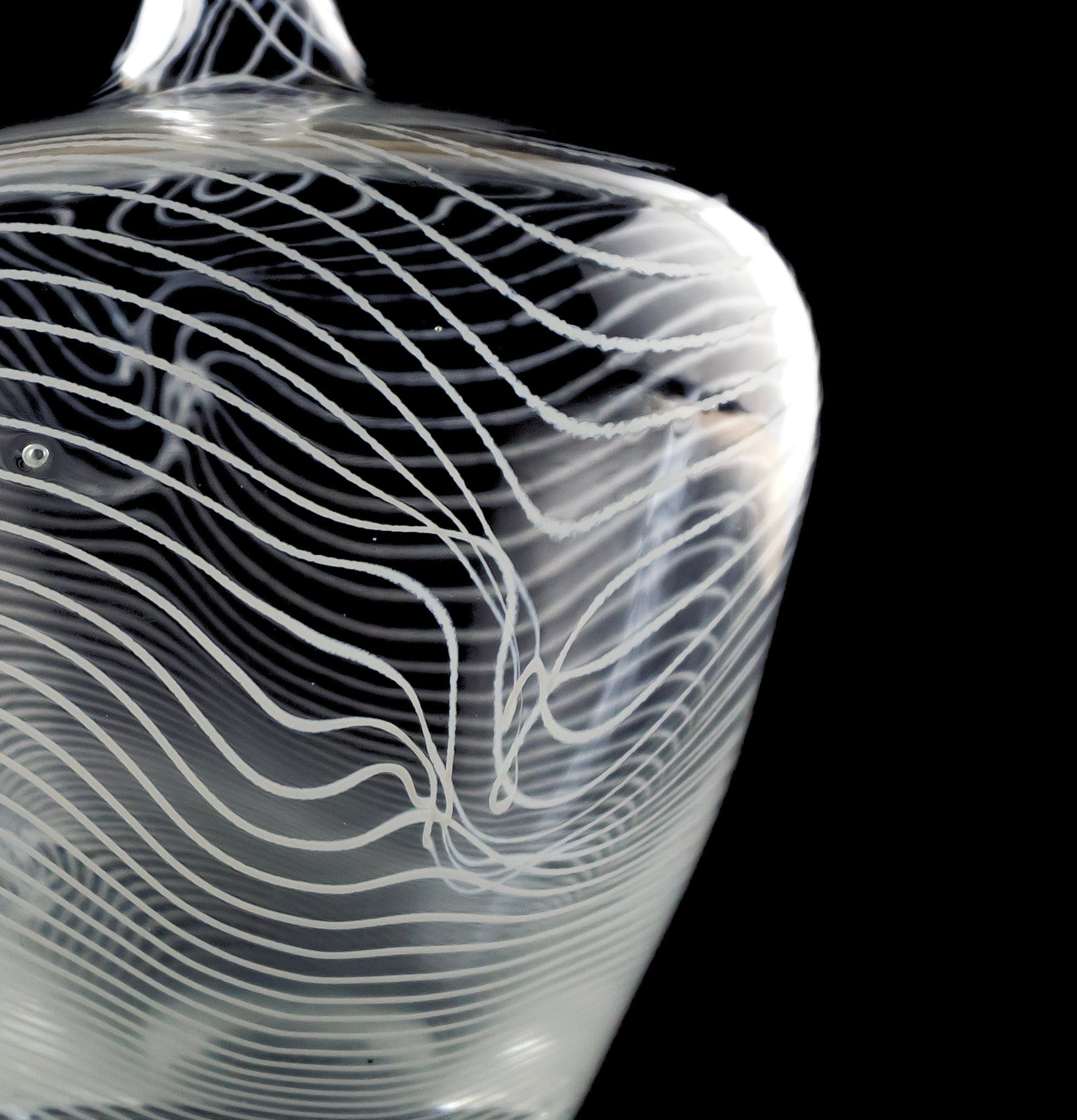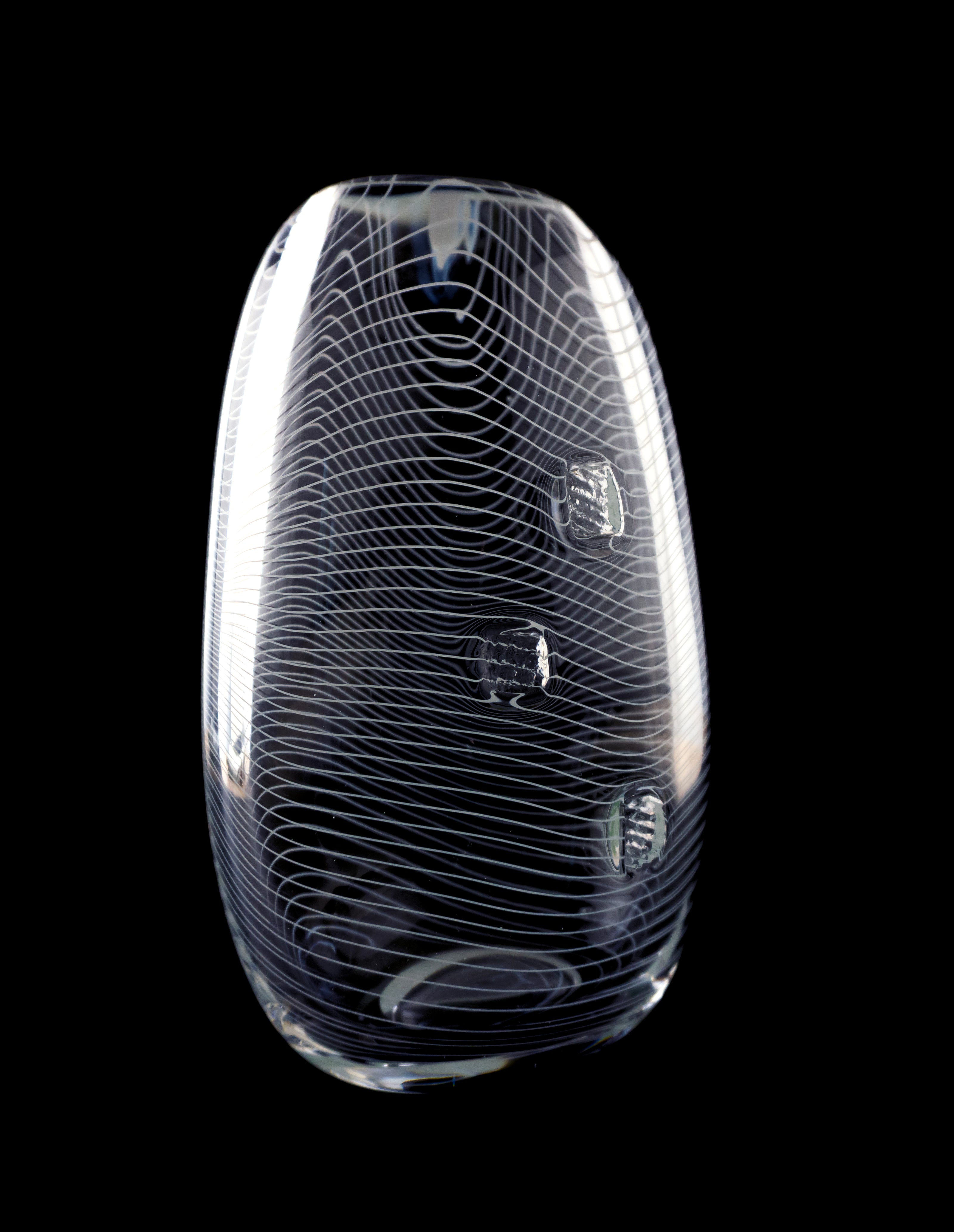 A meditation on movement and transformation, Deviation explores the delicate balance between order and change. Within the crystal-clear glass, fine white lines trace a rhythm of continuity and disruption, an abstract map of a life unfolding. Initially straight, they begin to bend, shift, or fracture, echoing the quiet moments when direction alters and certainty dissolves. Each deviation marks an encounter with possibility, a gesture of adaptation and becoming. Through clarity and distortion, the work contemplates how even the smallest divergence can open new paths, revealing that growth often begins where control is lost.
