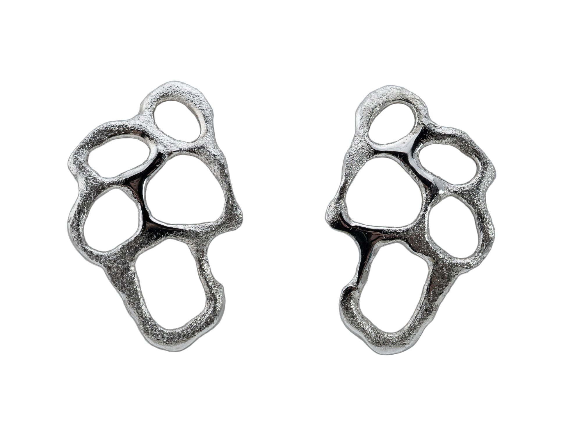 Weightless yet intricate, these earrings suspend nature’s lace in time. Silver threads capture the ephemeral elegance of forest fungi just as morning light begins to touch them.